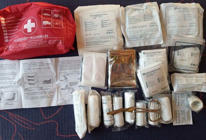 - Mullbinda és ragtapasz: Nagyobb sebek ellátására és a kötszerek rögzítésére.